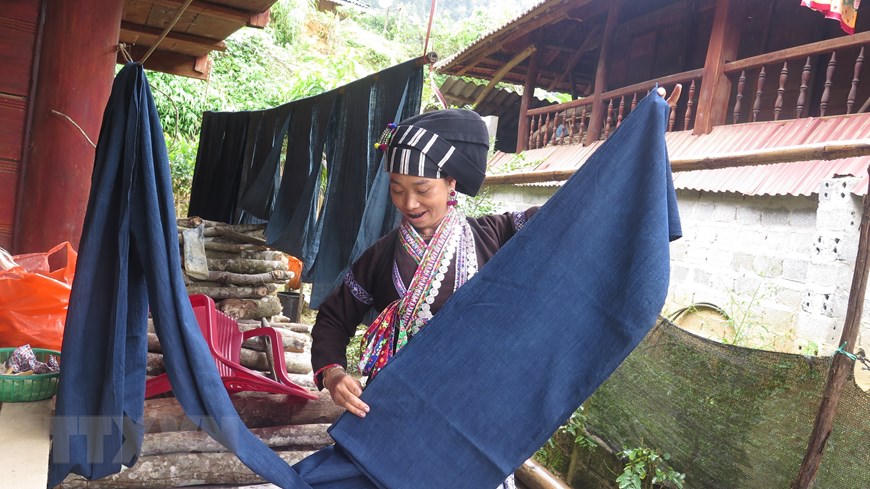 Để vải lên màu thật đều và đẹp, cần phải bóp mạnh, đều tay khoảng 30 phút cho ăn màu thì vớt ra vắt khô, đập và giặt sạch nước vôi rồi mới phơi. Công đoạn phơi vải là khâu đặc biệt quan trọng trong quy trình nhuộm vải, phải thường xuyên lật vải sao cho vải khô đều thì màu mới đẹp, không bị vết.