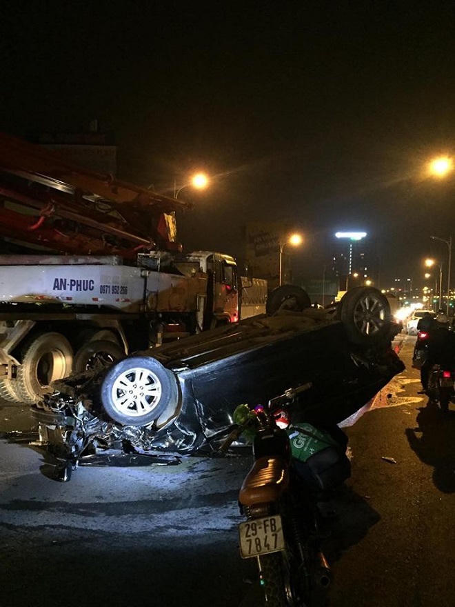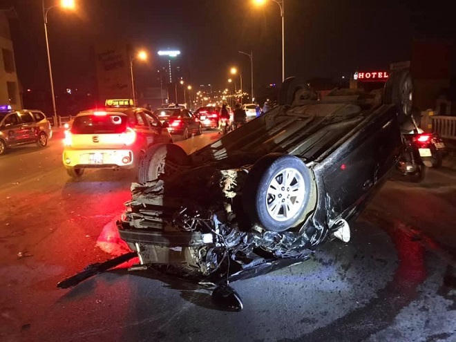 Hậu quả của cú va chạm liên hoàn trên khiến cả 3 phương tiện đều bị hư hỏng nặng. Trong đó, một chiếc xe bị lật ngửa trên cầu, 2 phương tiện bị vỡ nát phần đầu xe.