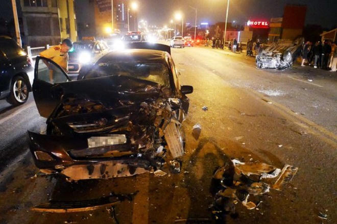 Rùng mình cảnh hiện trường ô tô đâm liên hoàn trên cầu Vĩnh Tuy