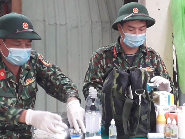 Các chiến sĩ quân y có mặt để hỗ trợ thuốc men cho lực lượng tìm kiếm. Ảnh: TTXVN