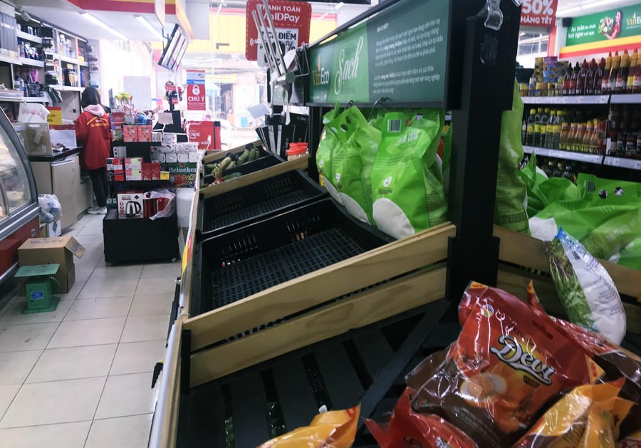 Tại một siêu thị ở quân Cầu Giấy, chị Nguyễn An Ngọc (Chùa Hà, quận Cầu Giấy) tỏ vẻ bồn chồn: "Không biết là mọi người mua lương thực, thực phẩm về dự trữ hay do tình hình dịch bệnh mà thực phẩm trở nên khan hiếm?. Tôi đã đi nhiều siêu thi và thấy hầu hết các siêu thị cũng trong tình trạng 'vườn không nhà trống'. Nhân viên phải xếp lại các mặt hàng cho quầy đỡ trống trải hơn".