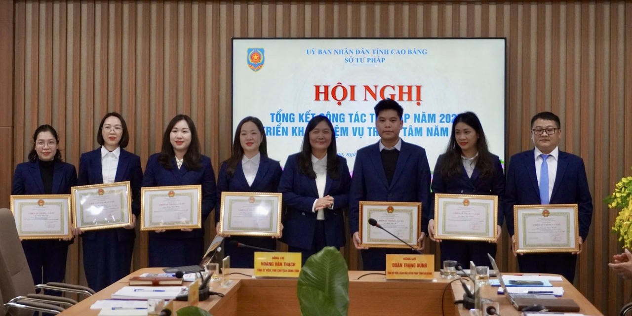 Nhân dịp này, Sở Tư pháp tỉnh Cao Bằng tặng danh hiệu Chiến sĩ thi đua cơ sở cho 15 cá nhân có thành tích hoàn thành xuất sắc nhiệm vụ năm 2025.