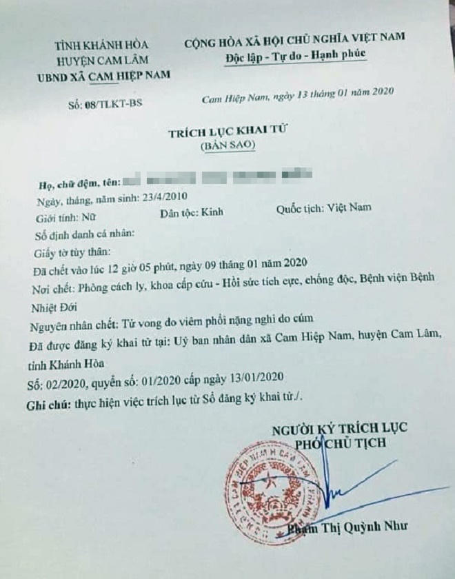 (PLVN) - Ngày 27/1 (mồng 3 Tết Canh Tý), ông Lê Tấn Phùng, Phó giám đốc Sở Y tế Khánh Hòa xác nhận trên địa bàn có một ca bệnh tử vong do cúm và dương tính với một chủng cũ của virus corona.