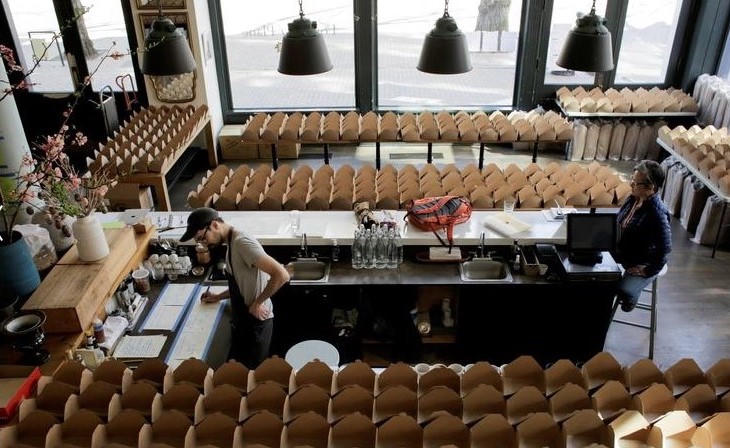 Đầu bếp Daniel Conkling lên lịch giao hàng trong chương trình do nhà hàng The London Plane tổ chức để quyên góp hơn 1.000 bữa ăn mỗi ngày cho nhân viên bệnh viện địa phương tại Seattle, Washington.
