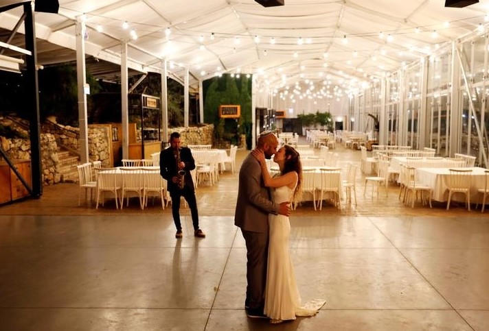 Cặp vợ chồng Roni Ben-Ari và Yonatan Meushar (ở Ein Hemed, Israel) khiêu vũ trong hôn lễ của họ, khi đám cưới không thể diễn ra theo kế hoạch do những hạn chế của chính phủ.