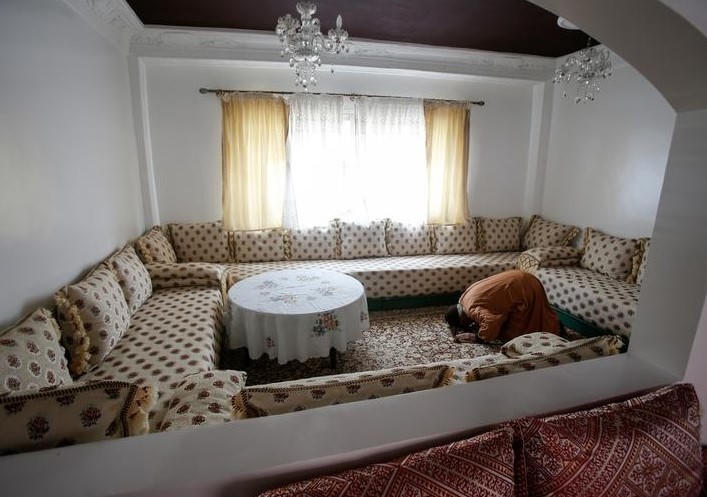 Hassan Elmoda, 75 tuổi, thực hiện các nghi lễ cầu nguyện vào thứ Sáu tại nhà khi nhà thờ Hồi giáo bị đóng cửa do lo ngại về sự lây lan của bệnh Covid-19 ở Casablanca, Morocco.