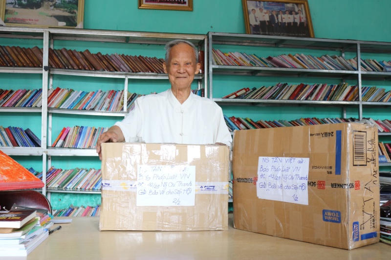 Từ đó đến nay, đã 8 năm, cụ Huy đạp xe đi các nơi, đến nhiều cơ quan, đơn vị, đại lý thu mua phế liệu để thu thập sách, báo cũ. Có chỗ tặng, chỗ bán rẻ, chỗ ủng hộ... Tất cả đều được cụ mang về lưu giữ tại thư viện phục vụ miễn phí người đọc.