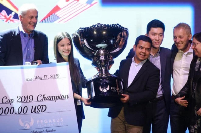Chị Nguyễn Hoàng Anh – đồng sáng lập Abivin nhận giải vô địch trong cuộc thi Startup World Cup 2019.