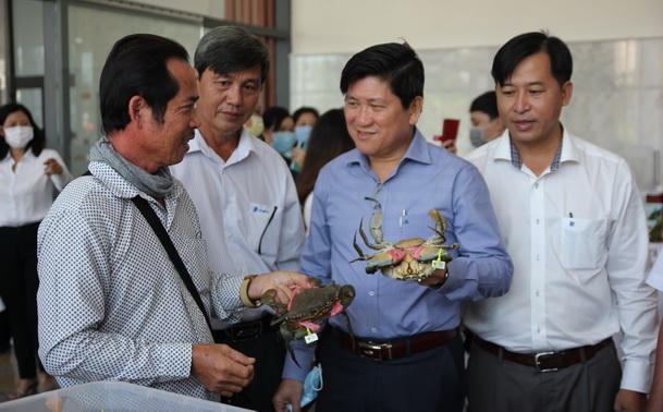 Chị Dương Thị Bích Năm - Giám đốc Công ty TNHH Dư Thái Bình (ấp Kinh Tắc, xã Hàm Rồng, huyện Năm Căn, Cà Mau) - cho biết: Công ty hiện đang kinh doanh mặt hàng cua biển Năm Căn và cung ứng các mặt hàng tôm khô, bánh phồng tôm, khô các loại. Tham gia trưng bày kết nối giao thương tại chuỗi sự kiện lần này, phía công ty rất mong muốn mở rộng thêm thị trường tiêu thụ ra các tỉnh, thành trên cả nước, nhất là các thị trường nước ngoài Đài Loan, Hàn Quốc, Nhật Bản. Tôi thấy, chuỗi sự kiện lần này là cơ hội lớn để công ty có thể mở rộng thêm mối quan hệ, giao lưu hợp tác với các đối tác để có thể quảng bá tiêu thụ sản phẩm, nhất là trong thời điểm dịch bệnh ảnh hưởng như hiện nay.