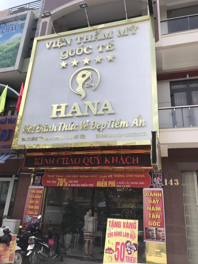Theo đơn tố cáo của một phụ nữ trú phường 9, TP Tuy Hòa, ngày 6/10, chị đến Hana nhờ làm che khít lỗ chân lông và gặp một người tự xưng “Bác sĩ Trang” tư vấn “liệu trình Laser Fractional CO2” với giá 10 triệu đồng.