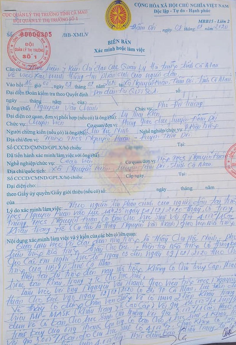 Sự thật phía sau biên bản xác minh vụ thầy giáo bán khẩu trang ở Cà Mau