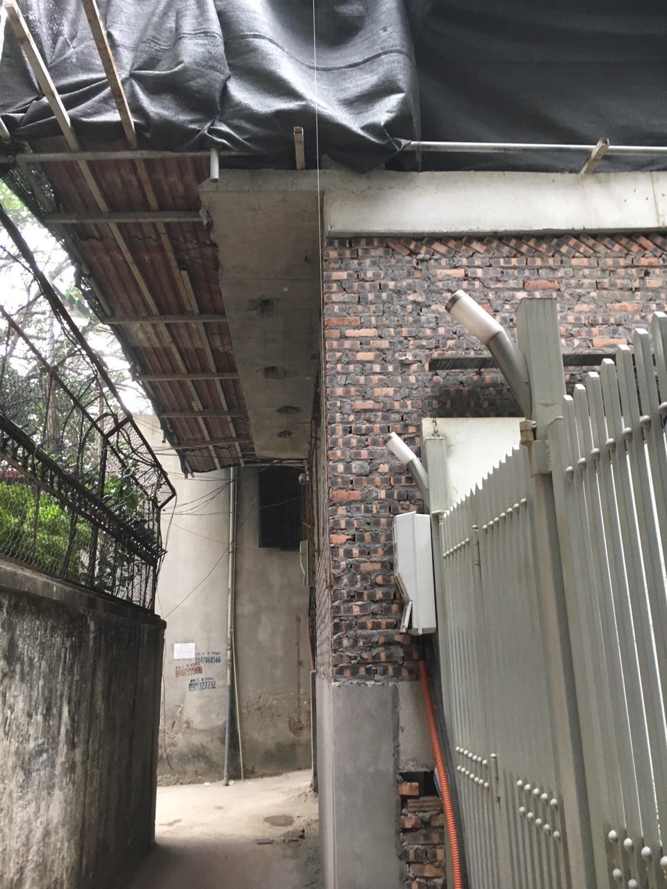 Một vấn đề nữa, ông Tuấn cho biết, trước khi xây dựng, ông Anh không thực hiện các quy định của Luật Xây dựng và Quyết định số 29/2015/QĐ-UBND ngày 09/10/2015 của UBND TP Hà Nội. Theo đó, ông Anh đã không lập biên bản khảo sát thi công liền kề; không làm cam kết đảm bảo an toàn công trình liền kề; không làm cam kết đền bù việc thi công làm hỏng công trình. Trong quá trình tổ chức thi công không làm màn che công trình đúng quy định; tự ý lắp giàn giáo lấn ra hơn 1m không gian trên thửa đất của gia đình ông.