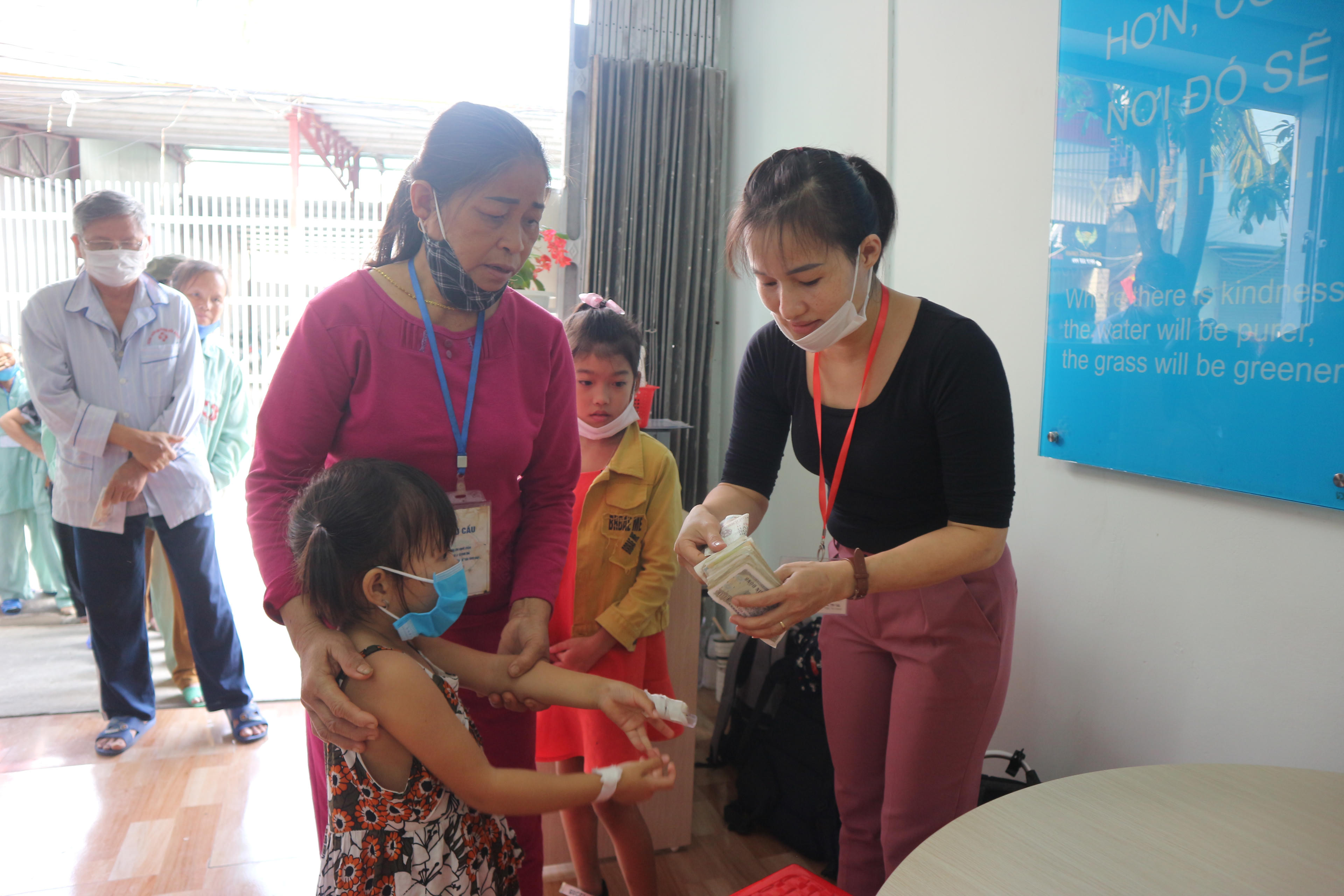 Chị Thủy cho biết, đa số những người phục vụ ở đây từ đầu bếp, nhân viên bưng bê, hướng dẫn, bán phiếu đều là tình nguyện viên, làm việc không lương.Mỗi người có một nghề riêng nhưng cứ đến hôm quán mở cửa lại sắp xếp đến dọn dẹp, chuẩn bị bát đũa, phục vụ các bệnh nhân. Ai nấy đều muốn đóng góp một chút sức nhỏ của mình để phục vụ những hoàn cảnh khó khăn.