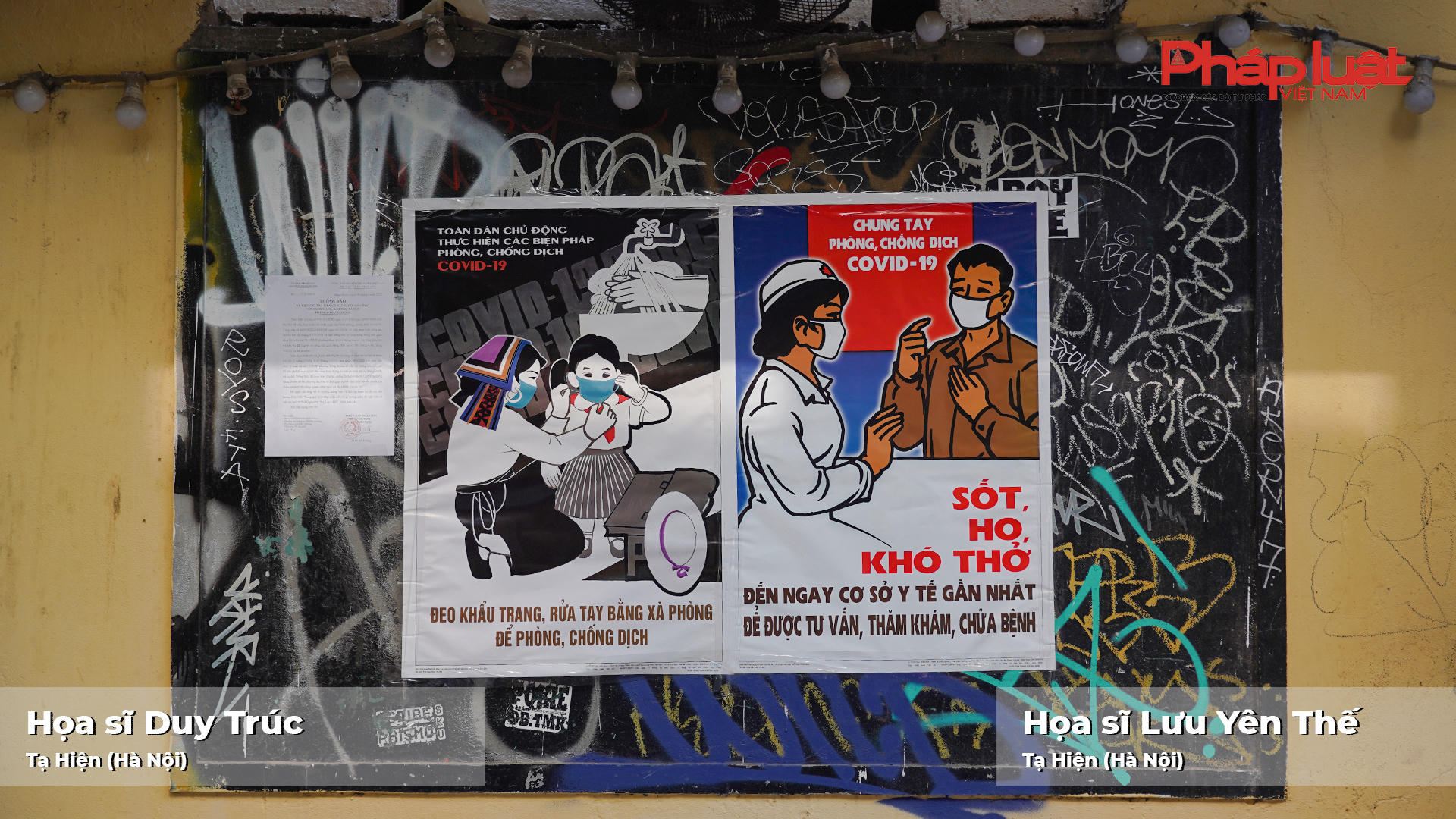 (PLVN) - Các tác phẩm thể hiện những thông điệp khúc triết, rõ ràng, gần gũi, được các họa sĩ chuyển tải đến công chúng với mong muốn chung tay, góp phần đẩy lùi đại dịch.