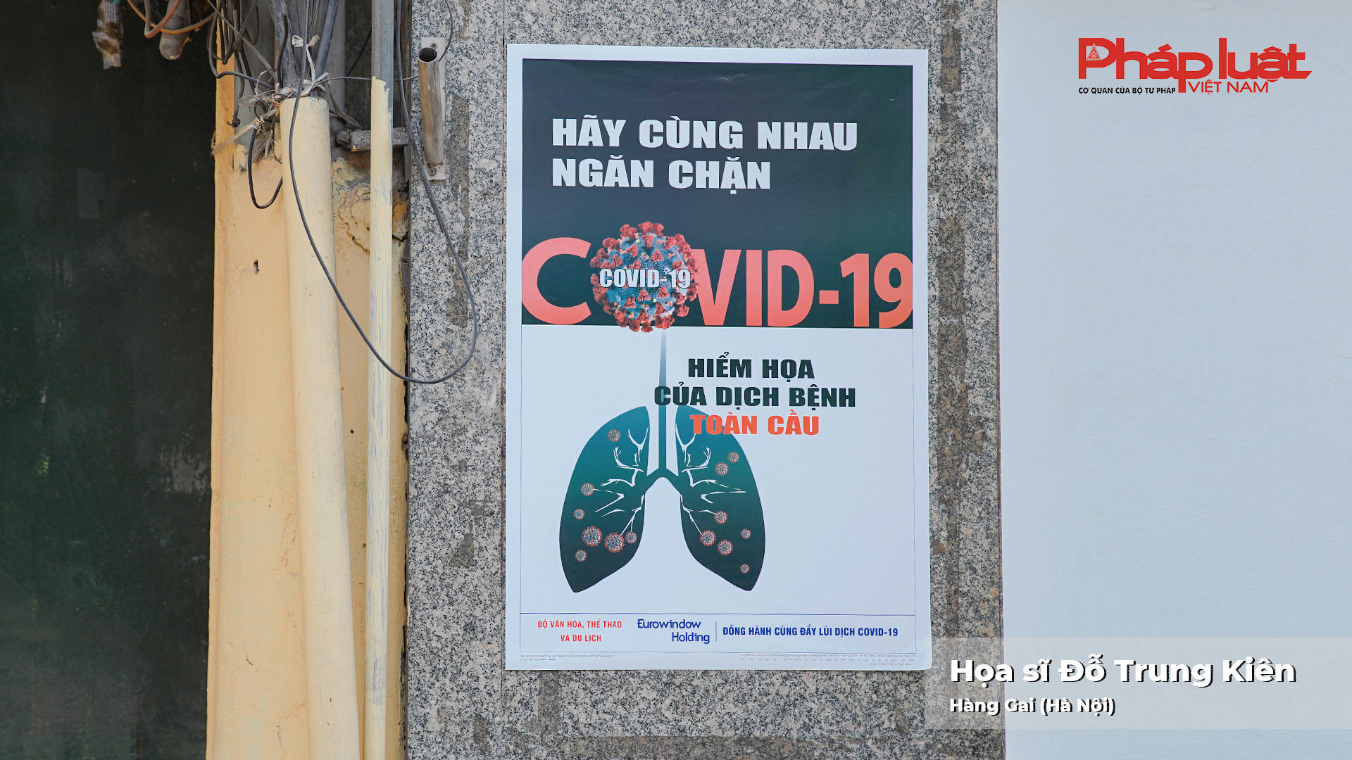 Phòng chống dịch Covid19 là bảo vệ bạn gia đình và xã hội là thông điệp gửi tới người dân từ họa sĩ Nguyễn Duy Thành. Ảnh: Minh Nguyễn.