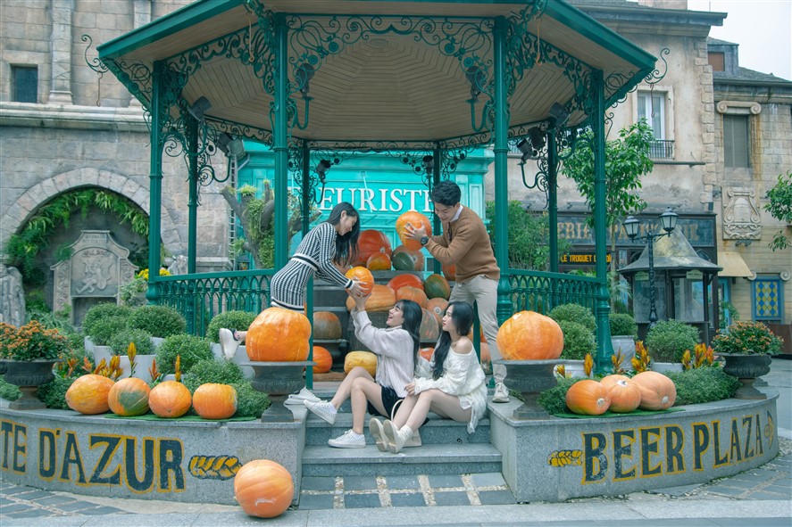 Quảng trường Du Dôme, Làng Pháp, Nhà thờ St Dennis, Beer Plaza,... trong phút chốc như trúng "lời nguyền phép thuật", được bao phủ bởi một màu tím và cam huyền bí, ma mị, bởi sự xuất hiện của hàng ngàn trái bí ngô được tạo hình ngộ nghĩnh vào ban ngày, phát sáng lập lòe khi bóng tối buông xuống, những tấm vải đen kết hợp mặt nạ quỷ kì quái, hình ảnh zombie, phù thủy, xác ướp… Tất cả được đặt khéo léo giữa hệ thống đèn chiếu sáng hiện đại của Sun World Ba Na Hills, hô biến thành phố cổ tích thường thấy trở thành một vương quốc phép thuật vừa kỳ quái, vừa cuốn hút khó cưỡng.