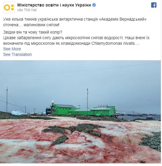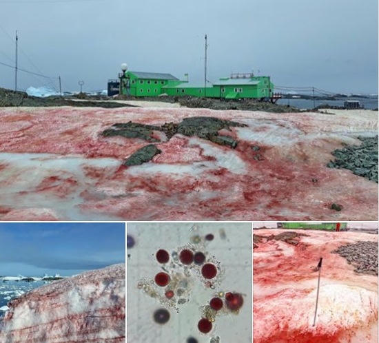 Các nhà khoa học cho biết, “tuyết máu” có thể nhìn thấy gần Cơ sở nghiên cứu Vernadsky nằm trên đảo Galindez ngoài khơi bờ biển Nam Cực trong vài tuần qua thực ra là do một loại tảo có tên là Chlamydomonas nivalis gây ra.