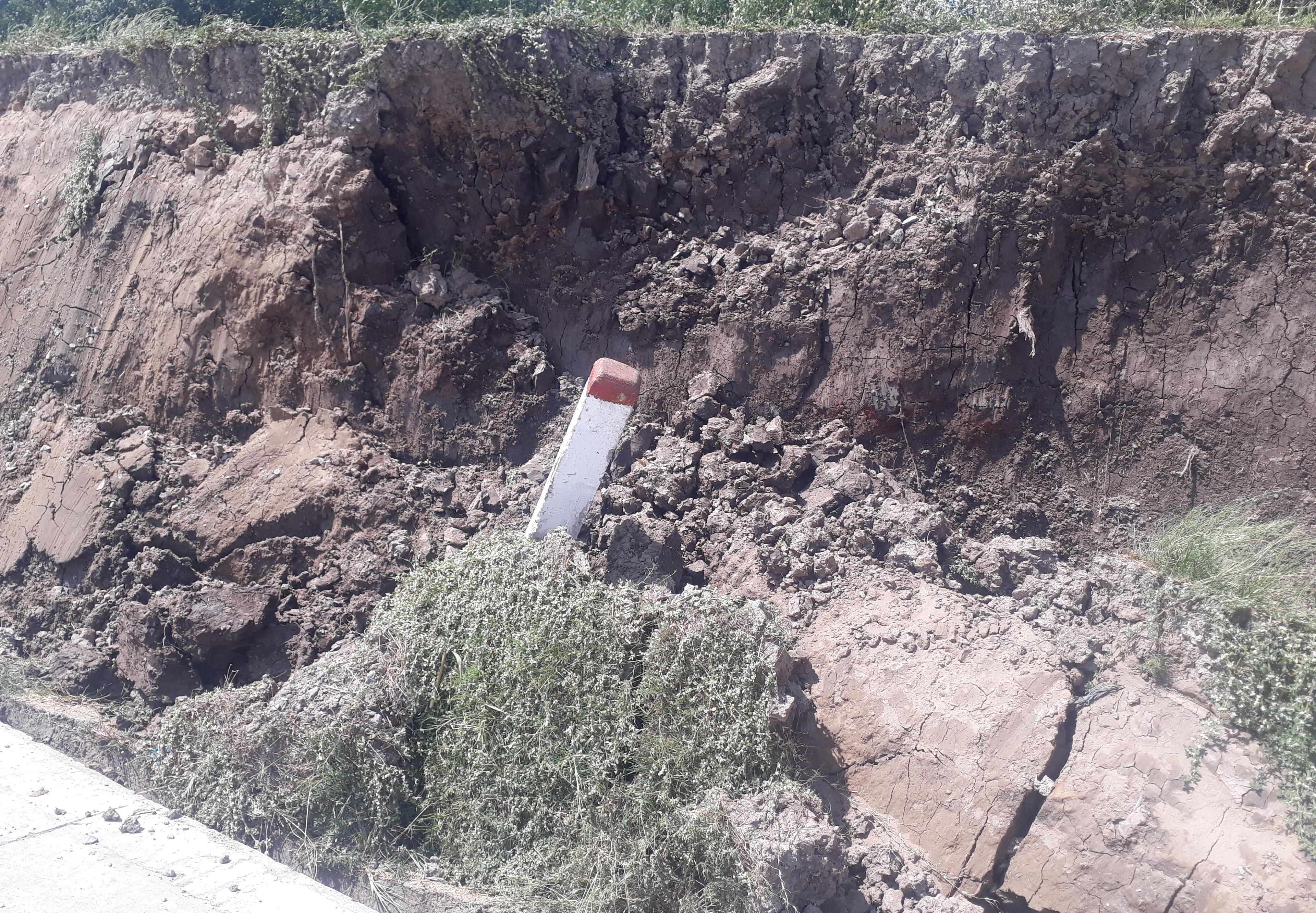 Vụ sụp lún làm hư hỏng đường bê tông chiều dài khoảng 120m, độ sâu khoảng 1,8 – 2m.