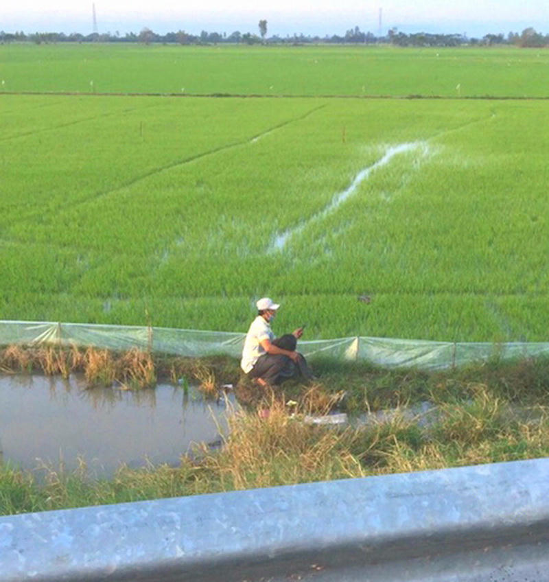 Ruộng lúa cách hiện trường khoảng chục mét có 1 phu nữ đang nằm thoi thóp được người dân đưa lên bờ rồi chở đến bệnh viện cấp cứu. Trong khi đó, 1 người đàn ông khác đi xe máy cùng tài xế xe tải bị thương nhẹ.
