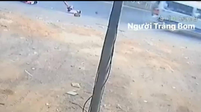 Hình ảnh học sinh từ trên xe lăn xuống đường bị camera ghi lại