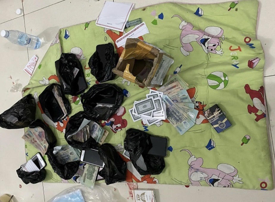 Tang vật thu giữ tại chiếu bạc gồm 12 triệu đồng; 01 bộ bài tây; 12 điện thoại di động và 08 xe mô tô các loại.