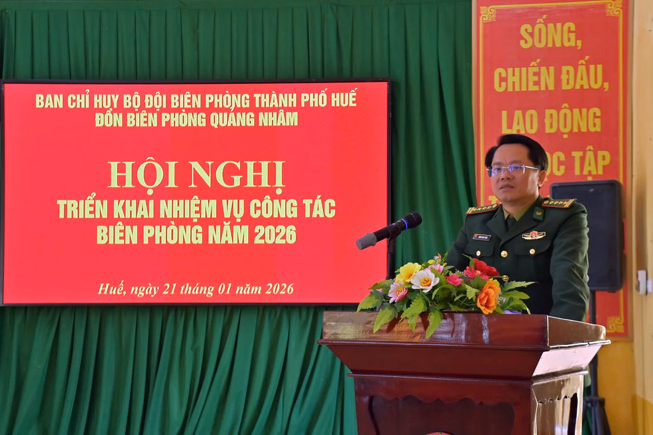 (PLVN) - Trong hai ngày 21 và 22/1, Đoàn công tác của Ban Chỉ huy Bộ đội Biên phòng (BĐBP) TP Huế do Đại tá Đặng Ngọc Hiệu, Bí thư Đảng ủy, Chính ủy Ban Chỉ huy BĐBP TP Huế làm trưởng đoàn đã đến dự và chỉ đạo Hội nghị triển khai nhiệm vụ công tác Biên phòng năm 2026 tại các Đồn Biên phòng đóng quân trên tuyến biên giới Việt Nam - Lào của TP Huế.