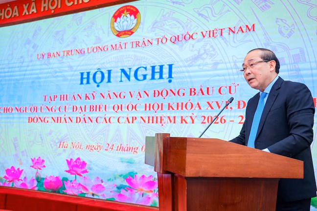 Ngày 24/2, tại Hà Nội, Ủy ban Trung ương Mặt trận Tổ quốc (MTTQ) Việt Nam tổ chức Hội nghị tập huấn kỹ năng vận động bầu cử cho người ứng cử đại biểu Quốc hội khóa XVI, đại biểu HĐND các cấp nhiệm kỳ 2026 - 2031. Ông Hoàng Công Thủy, Phó Chủ tịch Ủy ban Trung ương MTTQ Việt Nam chủ trì Hội nghị.