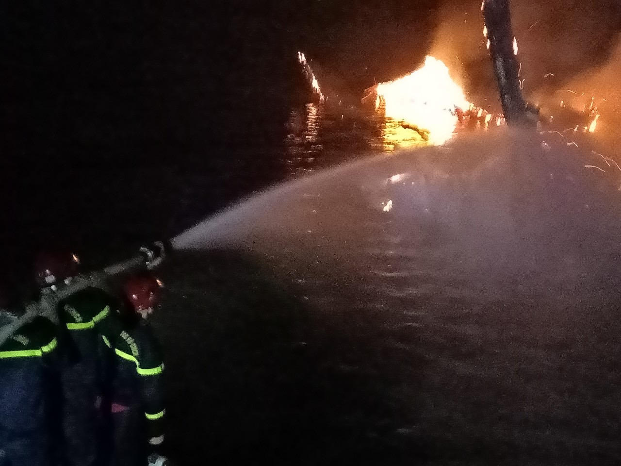 (PLVN) -Một tàu hành nghề câu mực của ngư dân Quảng Ngãi bốc cháy trong đêm, bị thiêu rụi toàn bộ, do địa hình phức tạp và thời tiết bất lợi, công tác chữa cháy gặp nhiều khó khăn..