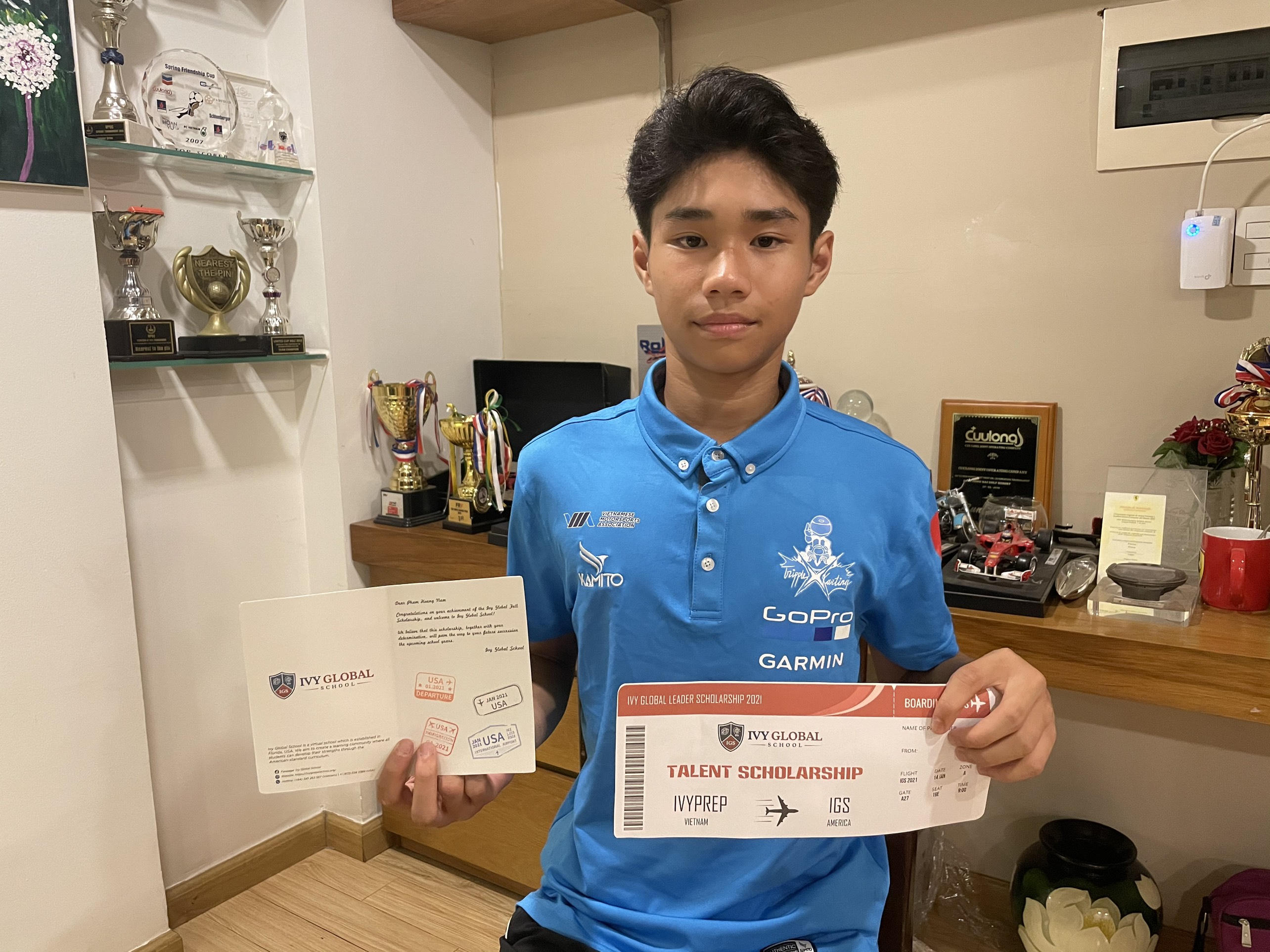 Tay đua F1 mini trẻ nhất Việt Nam nhận học bổng phổ thông Mỹ nhờ thành tích thể thao nổi trội