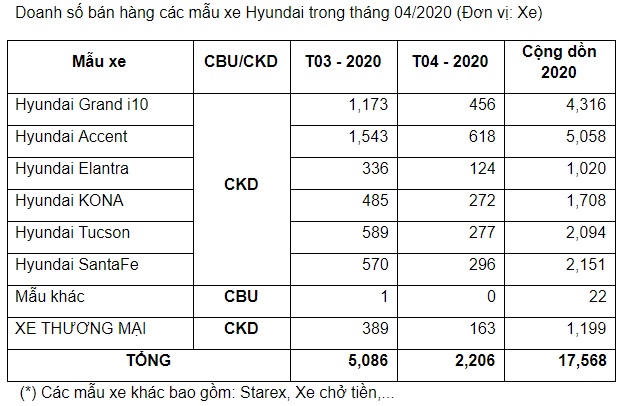 Hyundai Accent dẫn đầu về doanh số của TC MOTOR với 618 xe đến tay khách hàng trong tháng 4, đạt 5,058 xe cộng dồn. Grand i10 bán ra 456 xe, cộng dồn 4,316 xe trong 4 tháng đầu năm.