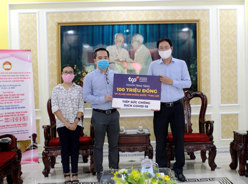 (PLVN) - Ngày 9/4, Công ty TCPVN – Văn phòng quốc tế đầu tiên tại Việt Nam của Tập đoàn TCP (T.C.Pharma), chủ sở hữu thương hiệu nước tăng lực Red Bull và Warrior đến từ Thái Lan, đã trao tặng hơn 800 triệu đồng bao gồm giá trị sản phẩm cho Uỷ ban Trung Ương Mặt trận Tổ Quốc Việt Nam TP Hồ Chí Minh và Văn phòng Uỷ ban Trung ương Mặt trận Tổ Quốc Việt Nam tại Ban Công tác phía Nam để chống dịch Covid-19.
