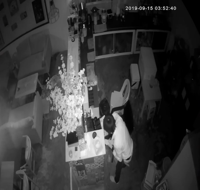 Qua trích xuất camera an ninh, vụ trộm đầu tiên vào khoảng 3h50 ngày 15/9/2019. Hình ảnh cho thấy có một nam thanh niên khoảng từ 20 đến 30 tuổi mặc áo khoác màu trắng, quần đen từ bên ngoài đột nhập vào trong quán.