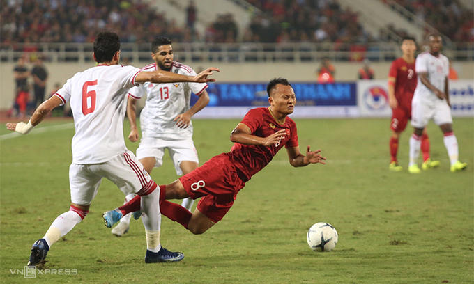 13' Đội tuyển UAE đang chủ động cần bóng tấn công hơn nhưng các cầu thủ Việt Nam cũng đang thi đấu tốt. Đến thời điểm này các tình huống tấn công của UAE đều bị ngăn chặn