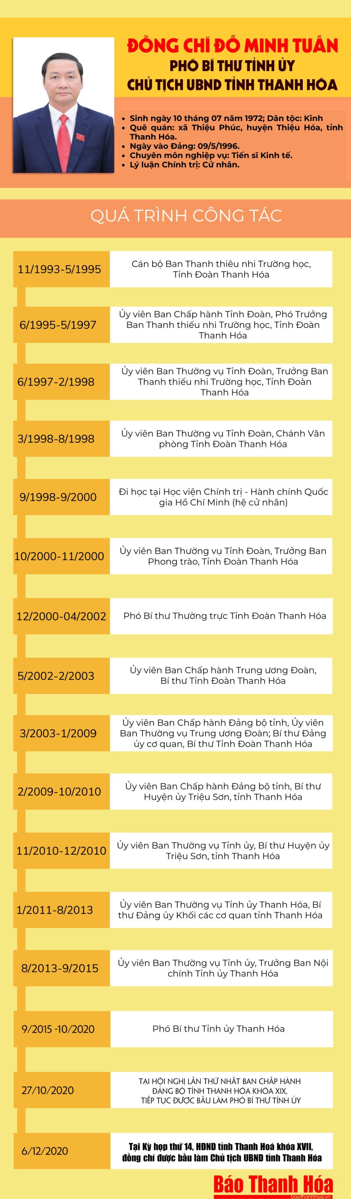 Tân Chủ tịch UBND tỉnh Thanh Hóa Đỗ Minh Tuấn, 48 tuổi, quê ở xã Thiệu Phúc, huyện Thiệu Hóa; trình độ Tiến sỹ Kinh tế.