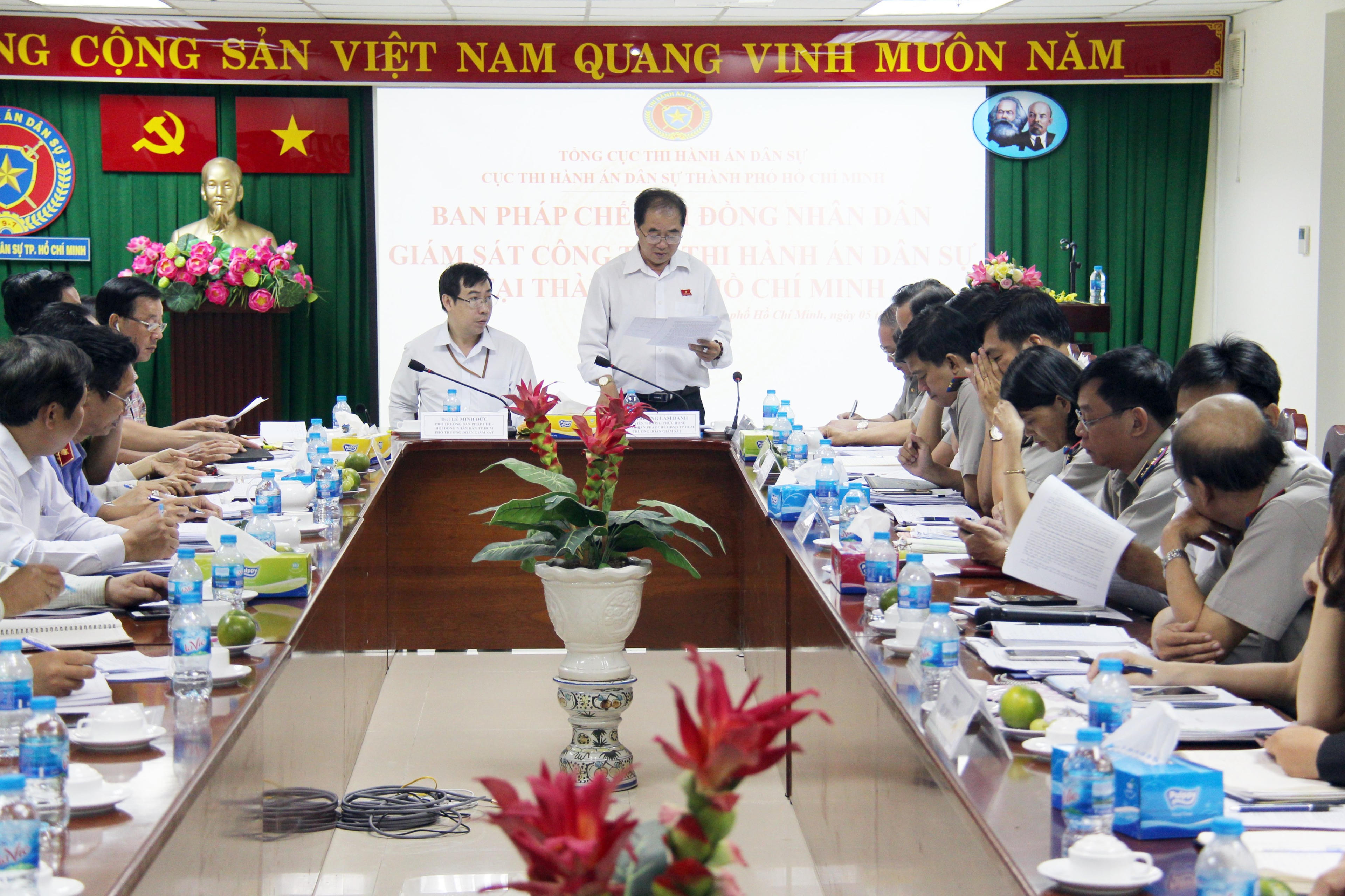 Tại buổi giám sát, Cục trưởng Cục thi hành án dân sự thành phố Vũ Quốc Doanh phản ánh một số khó khăn trong công tác thi hành án. Cụ thể, thời gian gần đây, Cục thi hành án dân sự thành phố thụ lý các vụ đại án hình sự kinh tế, tham nhũng có giá trị phải thu đặc biệt lớn, tài sản phải thi hành án ở nhiều địa phương khác nhau, trong khi thực tế yêu cầu phải xử lý xong tài sản của đương sự tại TP HCM mới xác định được các khoản nghĩa vụ còn lại để thực hiện ủy thác.