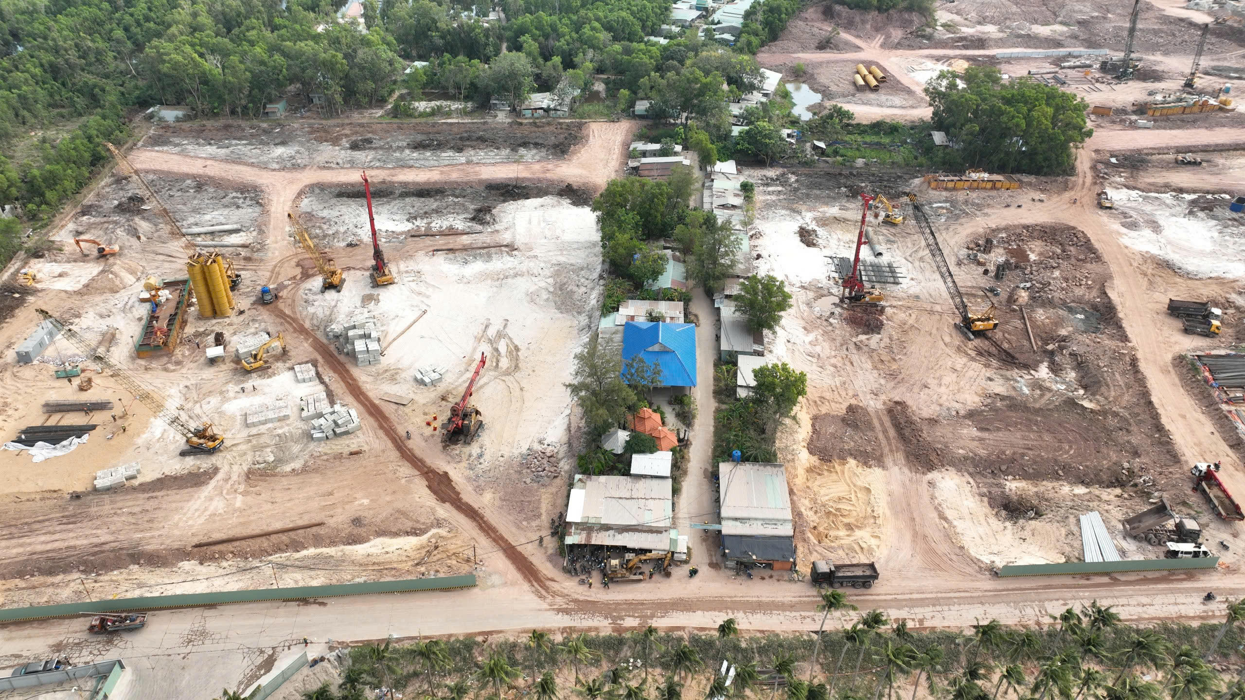 Hình ảnh dự án Khu đô thị hỗn hợp Bãi Đất đỏ đã huy động nhân lực, nguồn lực triển khai ngay trên những diện tích đất đã giải phóng, không chờ đợi mặt bằng sạch