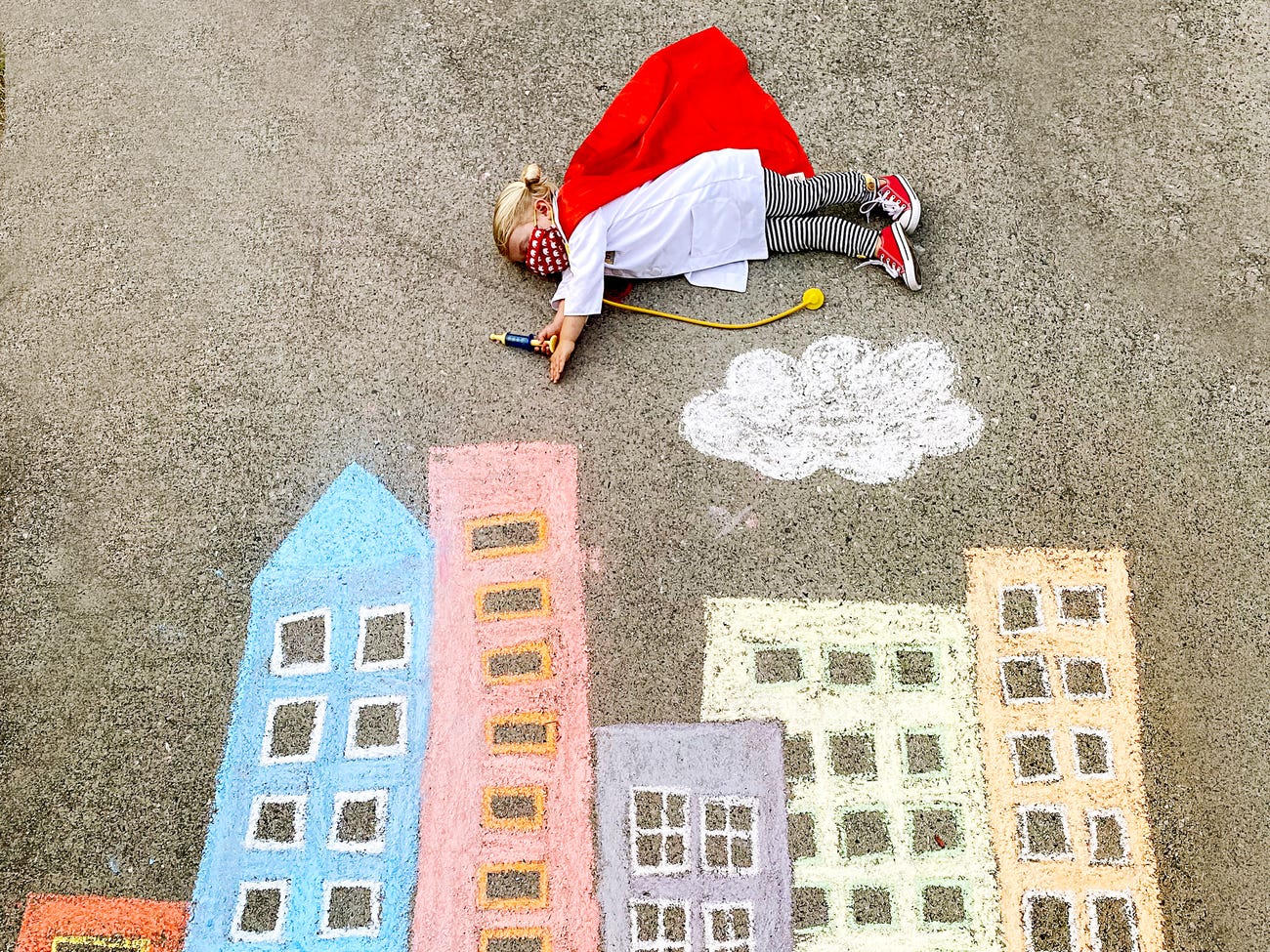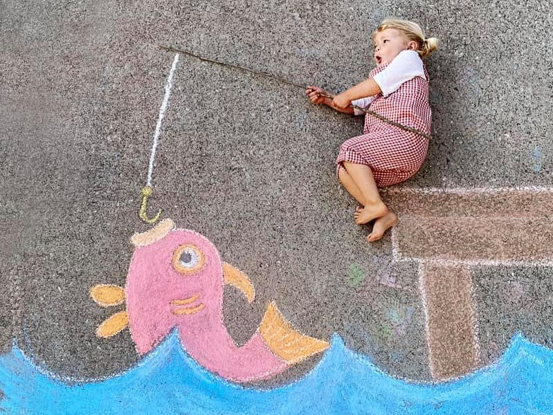 Abbey và các con gái của cô đã dùng phấn màu để vẽ ra những khung cảnh tuyệt vời để chụp các bức ảnh sinh động.
