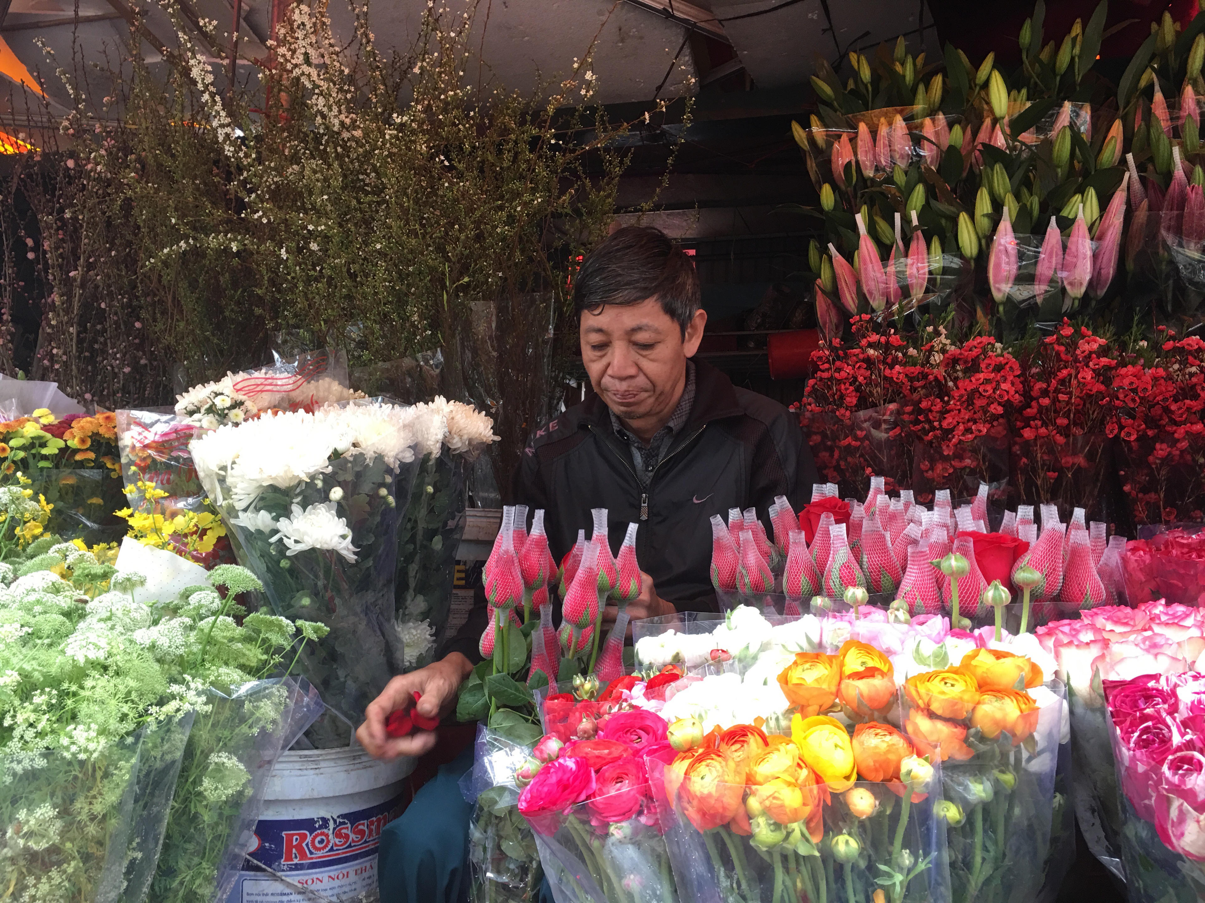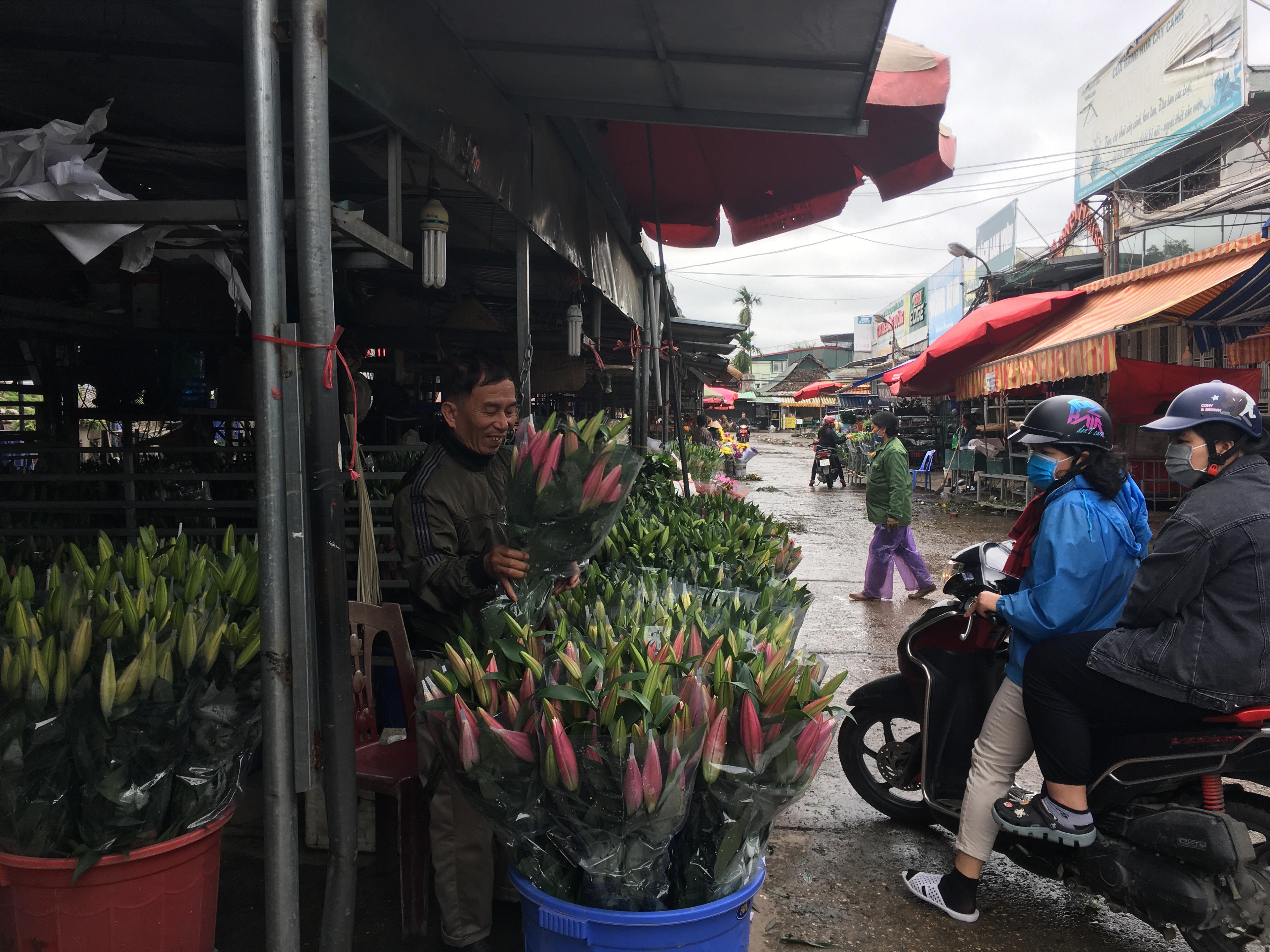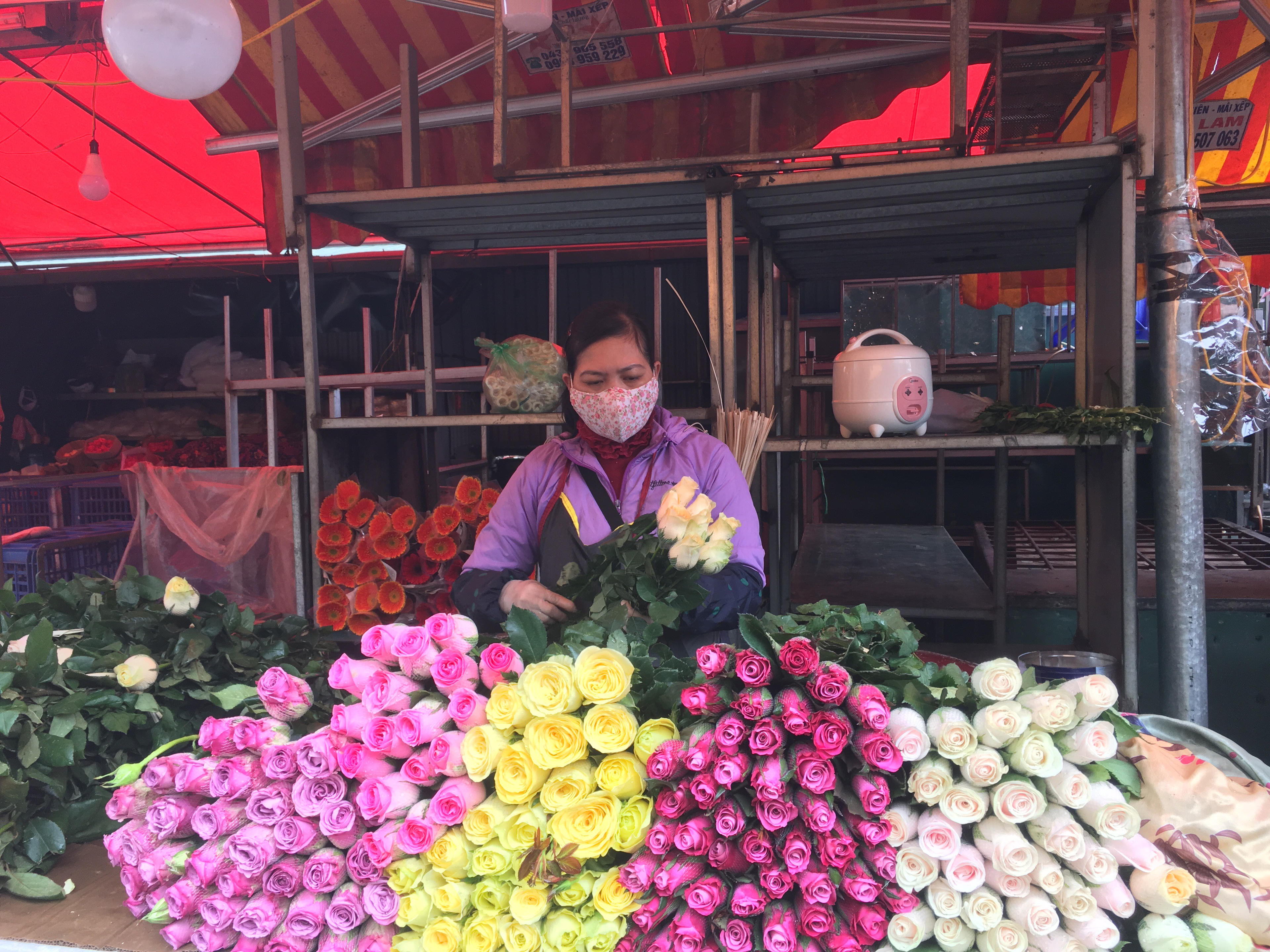 “Hoa nhiều lắm, từ nguồn trong nước như SaPa, Đà Lạt, Tây Tựu… cho tới hoa nhập khẩu Trung Quốc cũng có. Trong đợt dịch bùng phát hoa nhập khẩu Trung Quốc bị tắc biên nên không có nhập được, song từ 15 ngày trở lại đây, đã bắt đầu nhập được hoa bên Trung Quốc về.