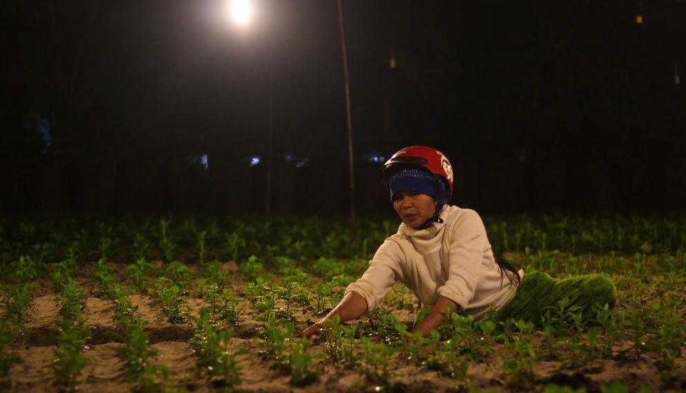 “Năm nay, người trồng hoa như chúng tôi kỳ vọng vào một vụ hoa Tết được mùa, bán được giá cao. Vì vậy nên phải thường xuyên coi sâu bệnh để kịp thời phun thuốc. Vì trồng chậm tiến độ, thời tiết thì âm u nên cây giống lâu phát triển. Phải chong đèn điện để cây lớn nhanh, sinh trưởng đúng thời điểm trúng dịp Tết để bán.” bà Phan Thị Miễn chia sẻ.