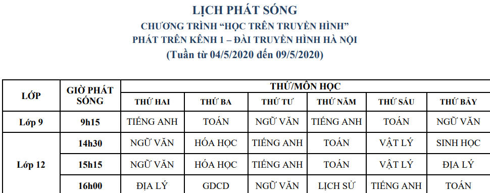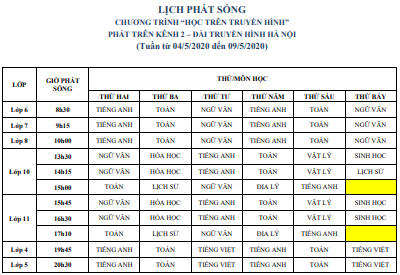 Cụ thể, Sở Giáo dục và Đào tạo Hà Nội tiếp tục cung cấp lịch học trên truyền hình cho học sinh từ lớp 4 đến lớp 12.