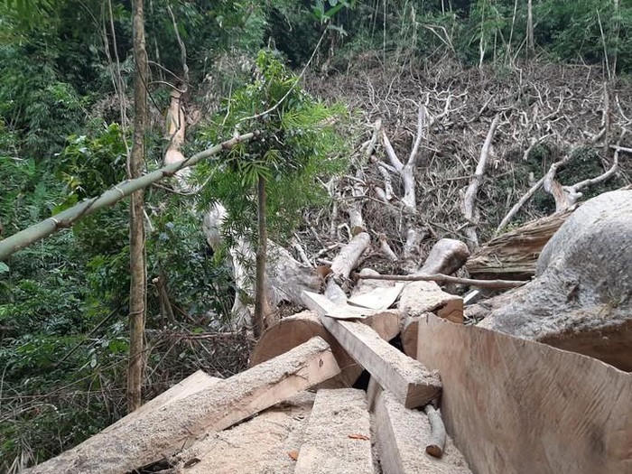 Dọc tuyến đường kiểm tra đã phát hiện một số gốc cây bị chặt hạ. Trong đó, có 13 lóng gỗ tròn; 22 hộp gỗ xẻ (nhóm III đến nhóm VIII). Số gỗ bị khai thác thuộc các tiểu khu 1023,1024,1025 với tổng khối lượng là 41,267m3. Thời gian khai thác gỗ xảy ra vào khoảng từ tháng 9 – 10/2019.