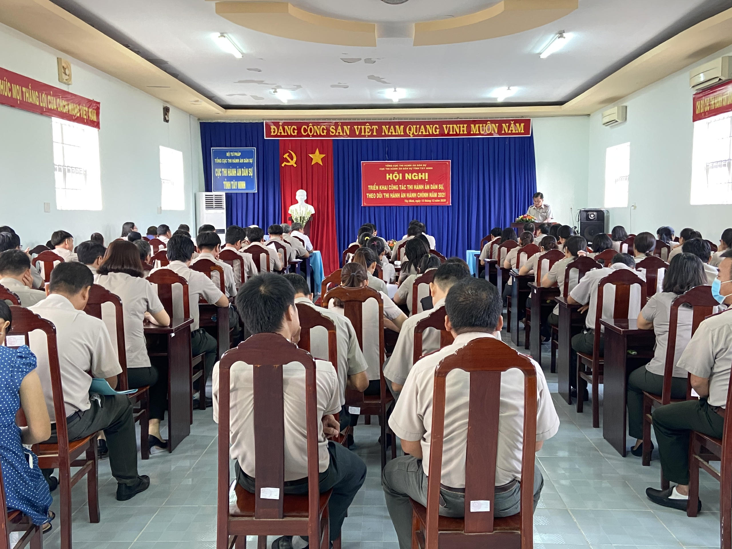 Tham dự và chỉ đạo hội nghị có đồng chí Mai Lương Khôi – Thứ trưởng Bộ Tư Pháp, đồng chí Phan Huy Hiếu – Chánh văn phòng Tổng cục THADS. Về địa phương có đồng chí Nguyễn Mạnh Hùng, Phó chủ tịch UBND tỉnh, Trưởng Ban chỉ đạo THA tỉnh Tây Ninh, Cục trưởng THADS Võ Xuân Biên cùng toàn thể cán bộ, chấp hành viên trên địa bàn tỉnh Tây Ninh.