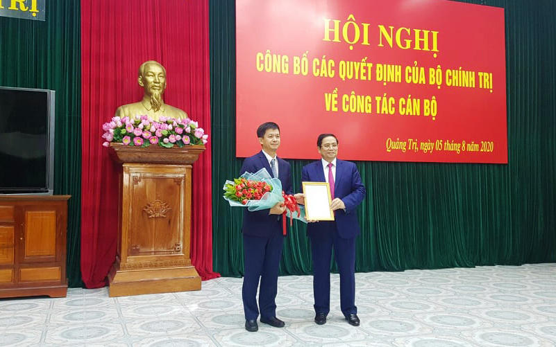(PLVN) - Chiều 5/8, tại Tỉnh ủy Quảng Trị, Ban tổ chức Trung ương tổ chức hội nghị công bố và trao quyết định của Bộ Chính trị về công tác nhân sự. Ông Phạm Minh Chính - Ủy viên Bộ Chính trị, Bí thư Trung ương Đảng, Trưởng Ban Tổ chức Trung ương dự và trao các quyết định.