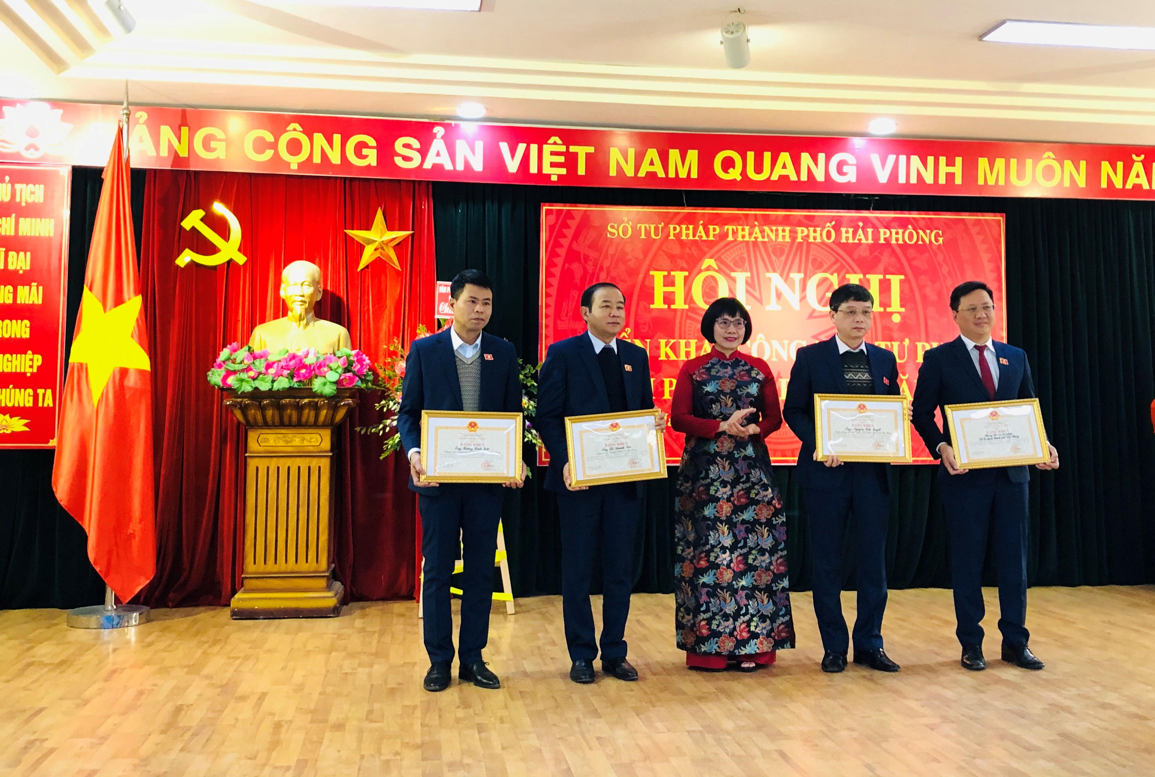 Nhân dịp này, các tập thể và cá nhân có thành tích xuất sắc trong hoạt động tư pháp năm 2020 đã được tặng Bộ Tư pháp, Sở Tư pháp Hải Phòng tặng Bằng khen, UBND TP Hải Phòng tặng Cờ thi đua.