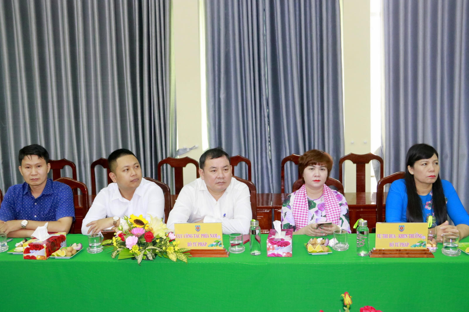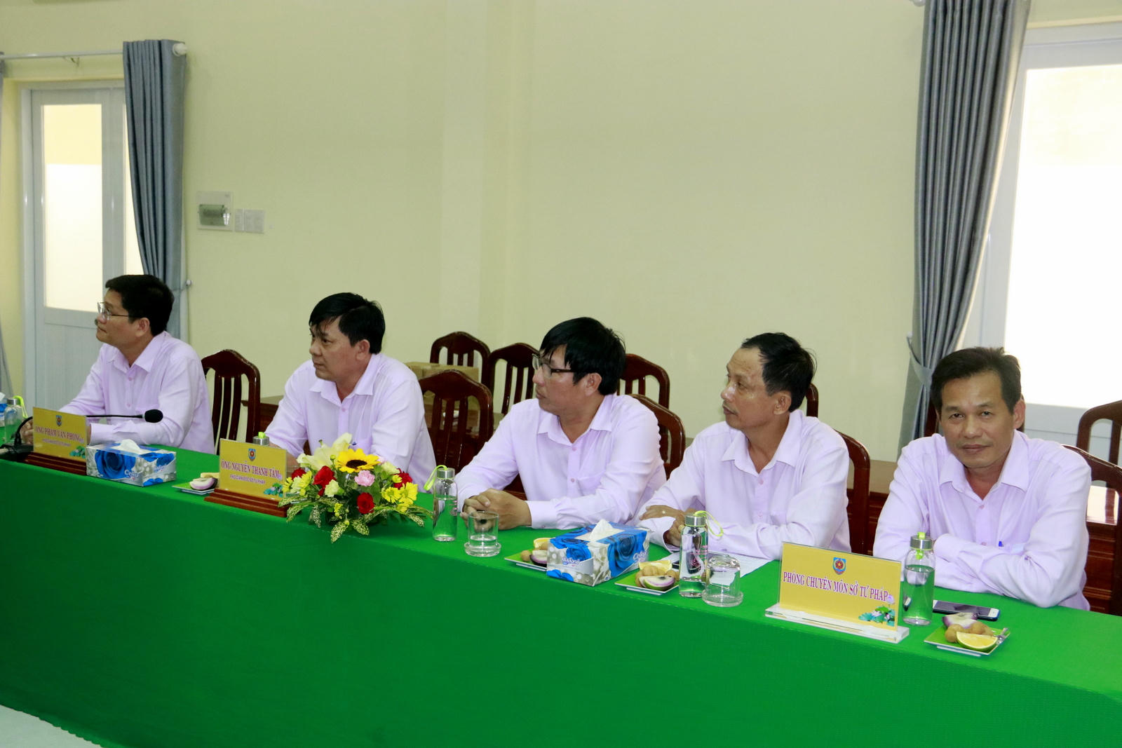 Tiếp đoàn có bà Lê Thị Hồng Phượng, Giám đốc Sở Tư pháp Đồng Tháp; Ông Phạm Văn Phong và ông Nguyễn Thanh Tâm, Phó Giám đốc Sở; cùng lãnh đạo các phòng, ban chuyên môn thuộc Sở.