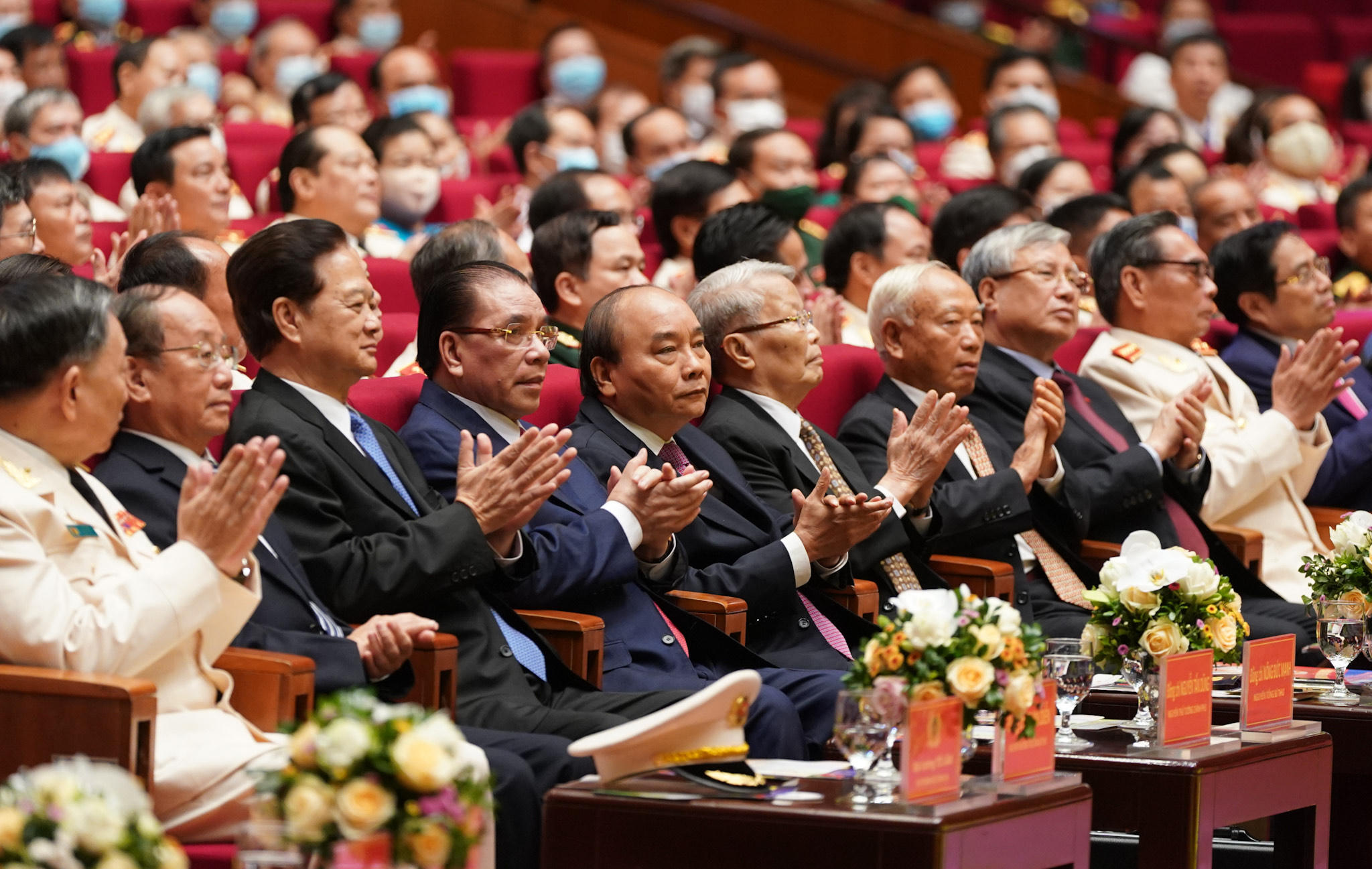 Thủ tướng Chính phủ Nguyễn Xuân Phúc; nguyên Tổng Bí thư Nông Đức Mạnh; nguyên Chủ tịch nước Trần Đức Lương; nguyên Thủ tướng Nguyễn Tấn Dũng; nguyên Chủ tịch Quốc hội Nguyễn Văn An; Thường trực Ban Bí thư Trần Quốc Vượng và các đồng chí lãnh đạo, nguyên lãnh đạo Đảng, Nhà nước, Mặt trận Tổ quốc Việt Nam; đại diện các ban, bộ, ngành Trung ương tới dự.
