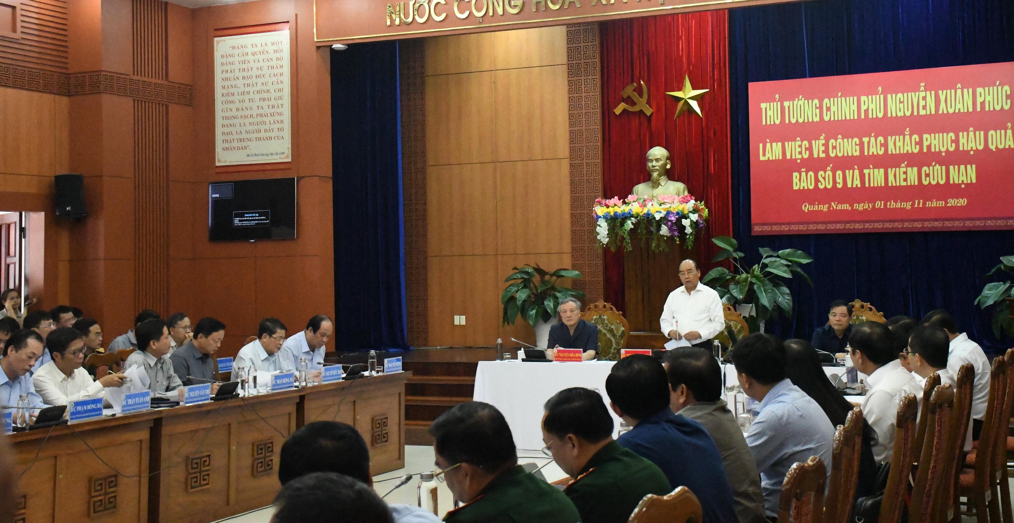 (PLVN) - Đó là yêu cầu của Thủ tướng Chính phủ Nguyễn Xuân Phúc tại buổi làm việc với các tỉnh miền Trung gồm Đà Nẵng, Quảng Nam, Quảng Ngãi, Bình Định để đưa ra một số quyết sách về hỗ trợ khắc phục hậu quả bão lũ vào chiều 1/11.