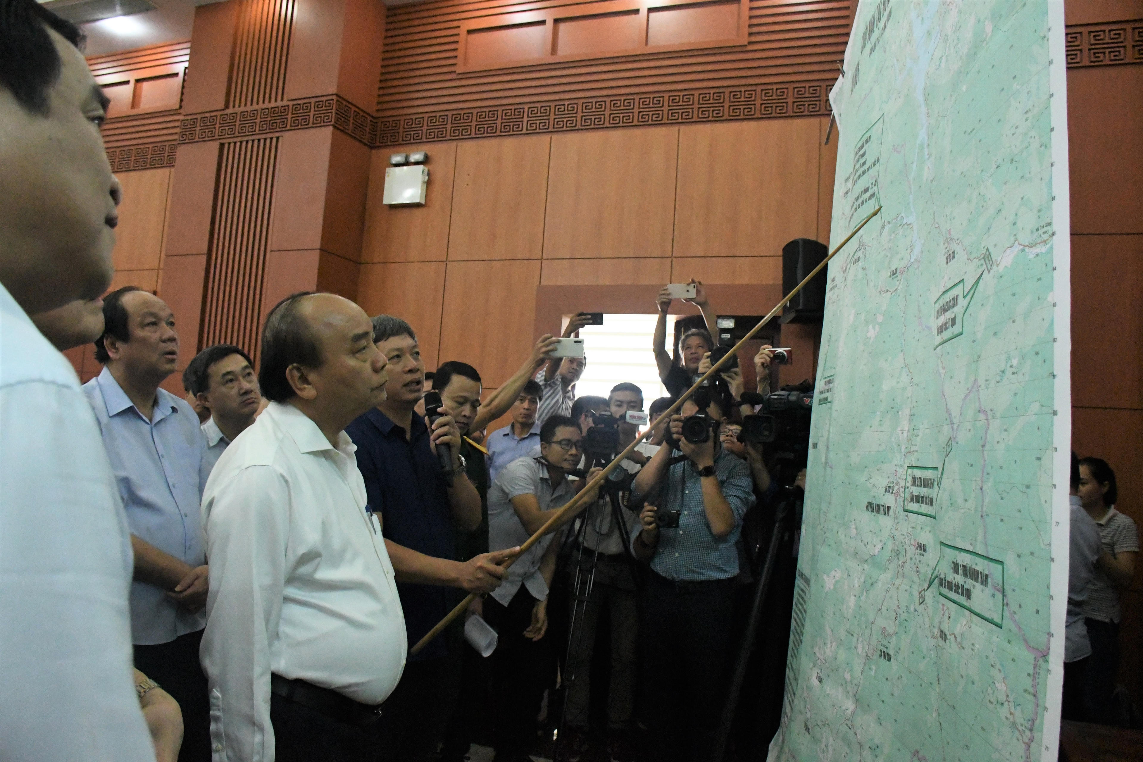Trước khi buổi làm việc bắt đầu, Thủ tướng Chính phủ Nguyễn Xuân Phúc được nghe báo cáo về tình hình cứu hộ tại các điểm sạt lở những ngày qua ở Quảng Nam, khiến nhiều người chết và mất tích.