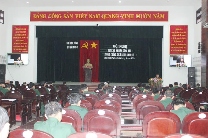 (PLVN) - Ngày 24/4, Bộ chỉ huy quân sự tỉnh Thừa Thiên Huế tổ chức hội nghị rút kinh nghiệm công tác phòng, chống dịch Covid - 19 cho Ban chỉ huy quân sự 9 huyện, thị xã, thành phố, các đơn vị trực thuộc và 8 khu cách ly tập trung y tế.
