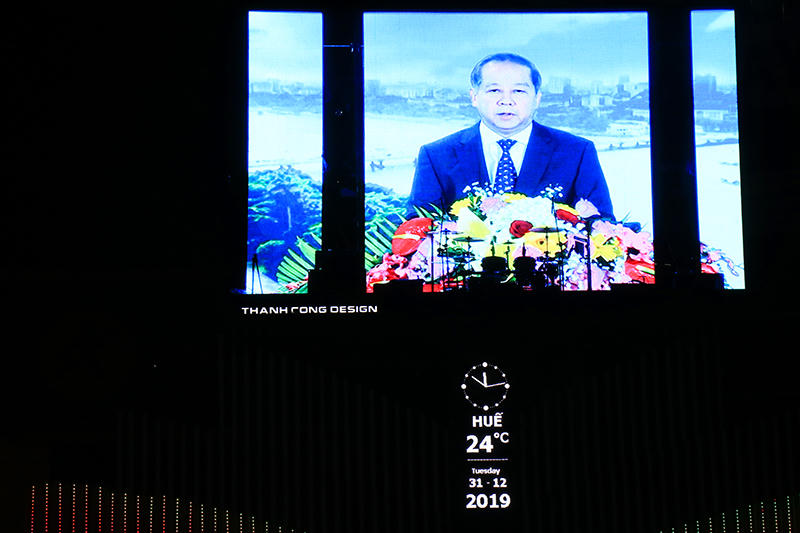 Nếu mở đầu chương trình là một cơn mưa khá nặng hạt thì đến càng đến thời khắc chuyển giao sang năm mới 2020 thời tiết khá thuận lợi với nhiệt độ là 24°C, trời không mưa. Lúc này, Chủ tịch UBND tỉnh Thừa Thiên Huế Phan Ngọc Thọ gửi lời chúc đến toàn thể người dân tỉnh Thừa Thiên Huế lời chúc mừng năm mới 2020.